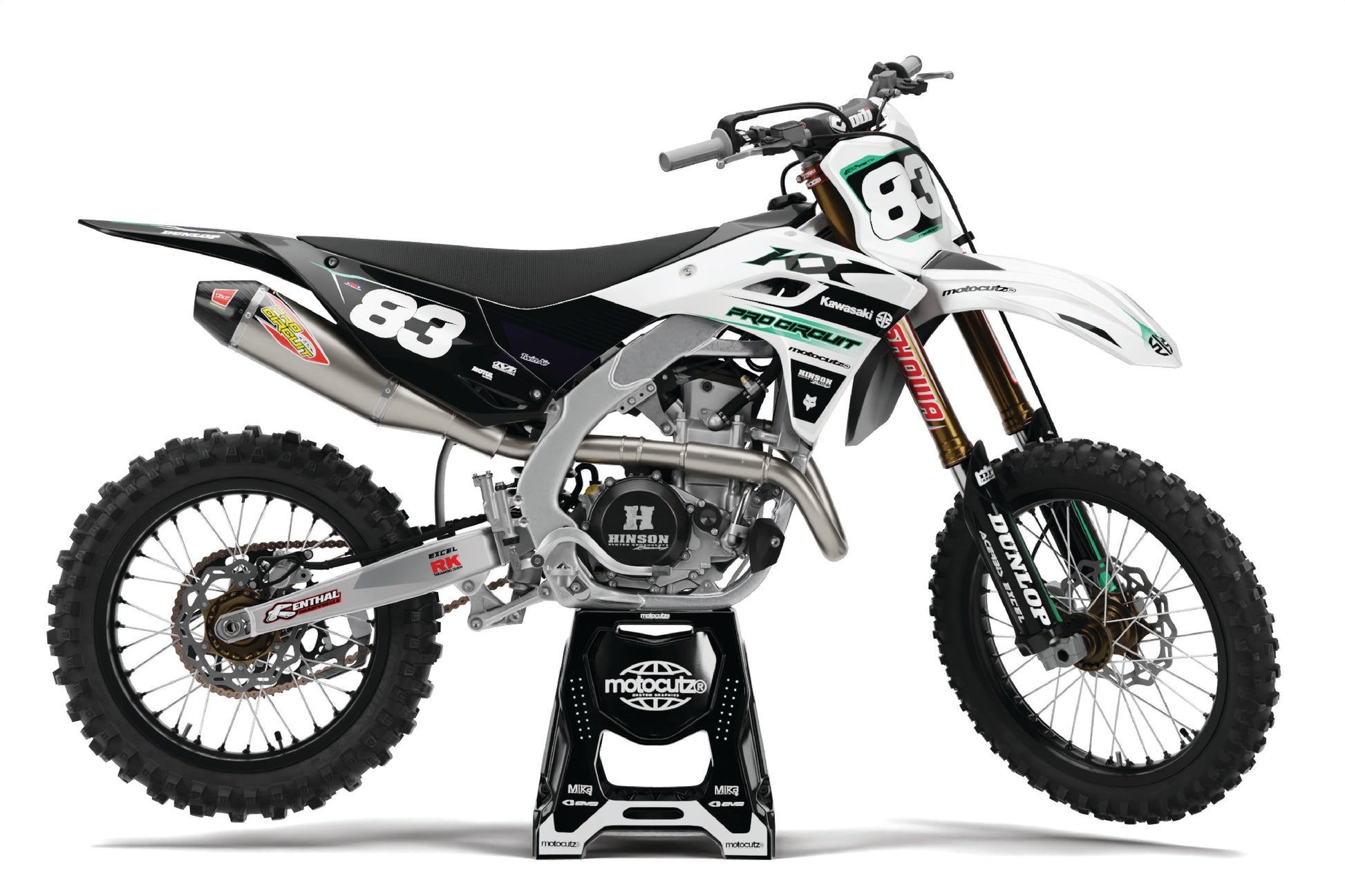 Radiator Shroud Graphics, Front & Side Number Plates, Air Box Graphics, Front & Rear Fender Graphics, Fork Guard Graphics, and Swing Arm Graphics.