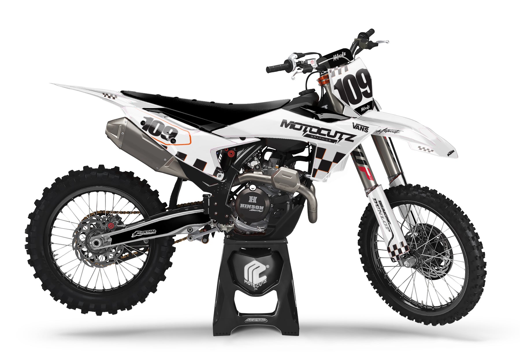 Radiator Shroud Graphics, Front & Side Number Plates, Air Box Graphics, Front & Rear Fender Graphics, Fork Guard Graphics, and Swing Arm Graphics.
