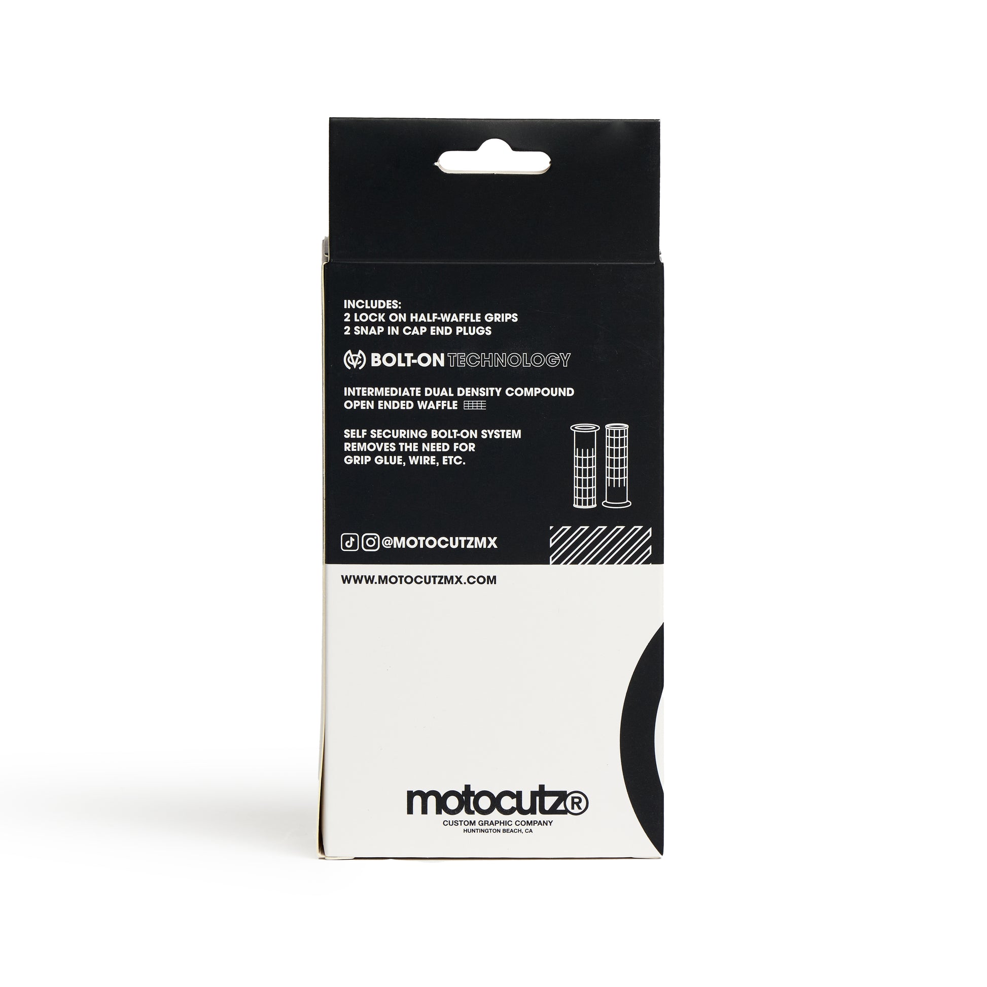 Includes 2 Lock On Half Waffle Grips, 2 snap in cap end plugs, and an allen wrench to install.